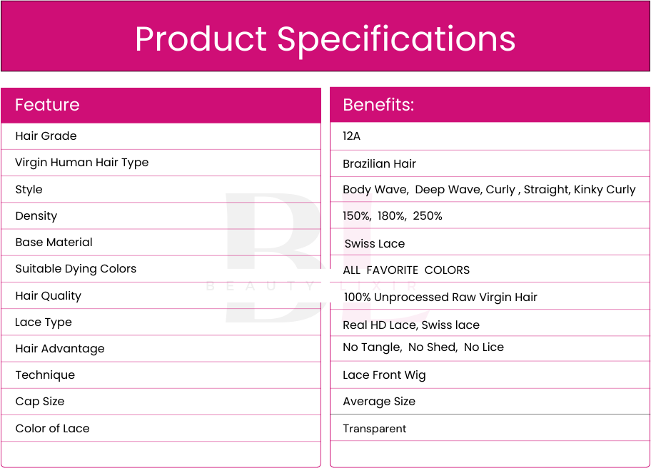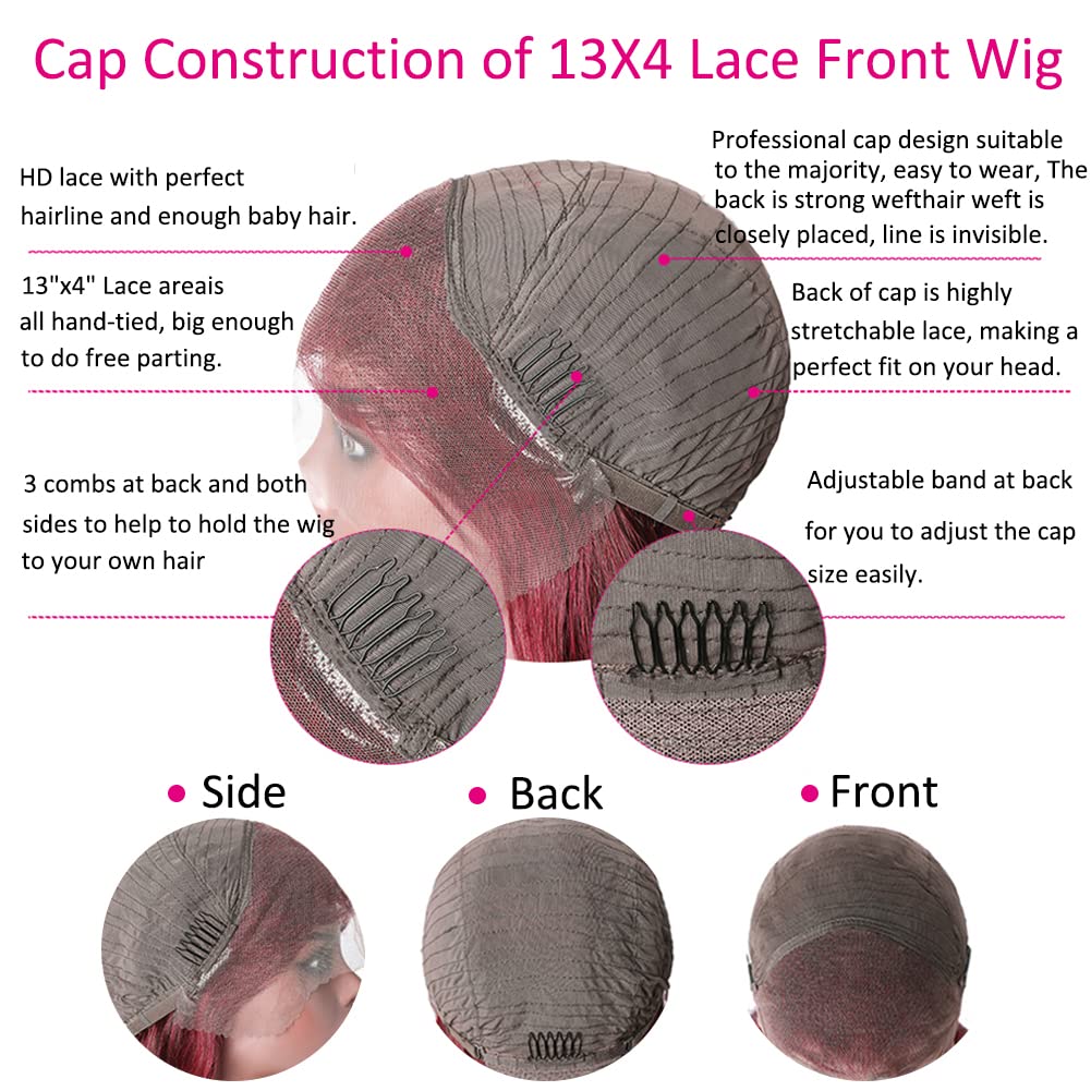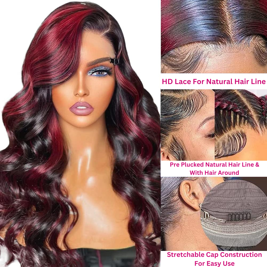 The Burgundy Body Wave Lace Front Wig Human Hair is Made of Unprocessed Brazilian Virgin Human's Hair. Full Cuticle Aligned, Natural and Healthy.