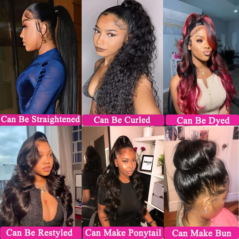 180% Natural Density Frontal Wigs for Black Women, Pre Plucked Natural Hairline with Baby Hair, Soft And Tight, No Shedding and Tangling. It can be Dyed, Bleached and Straightened. It also can be transformed to Middle or Side Part and Restyled as You Like.
